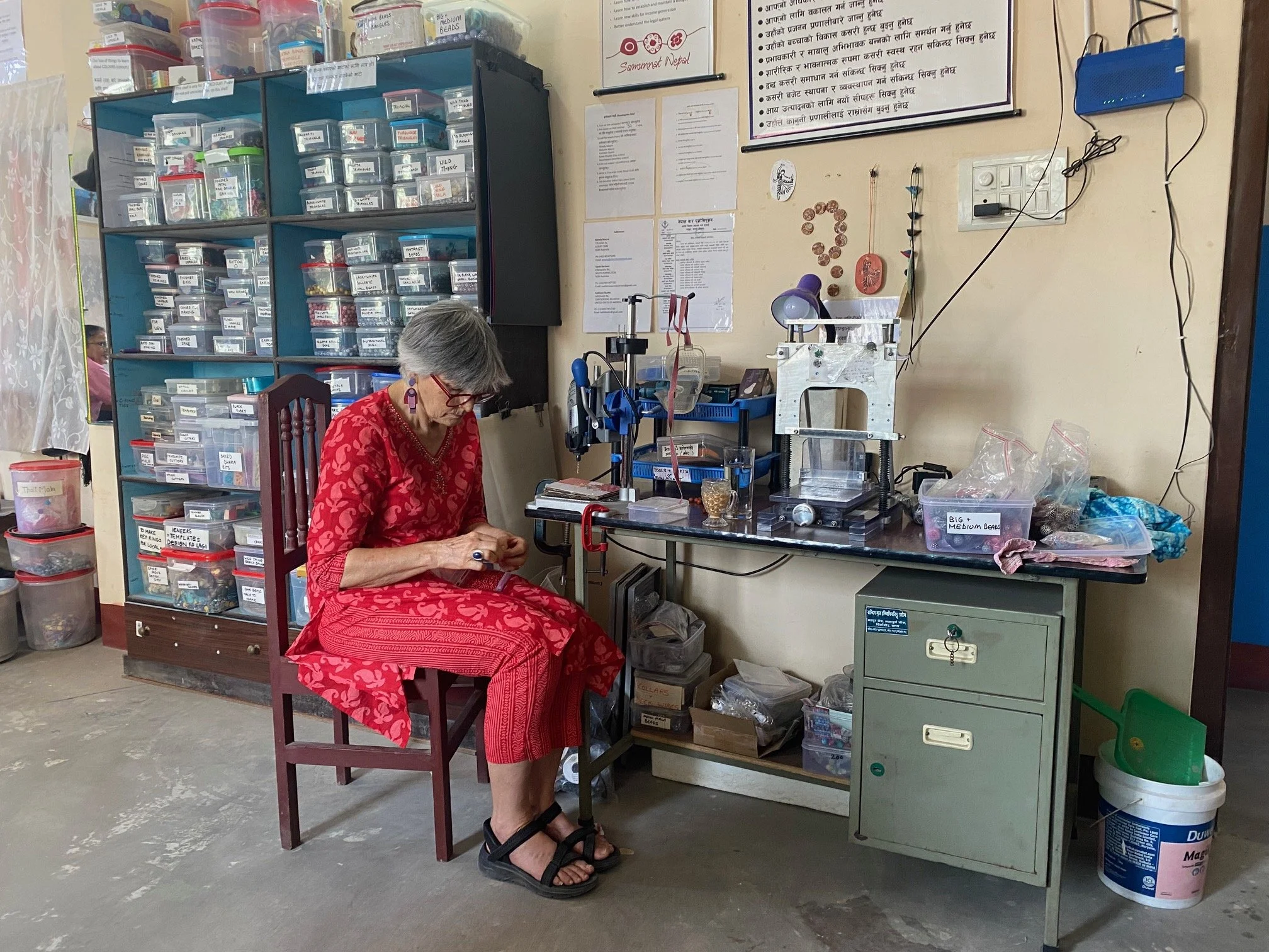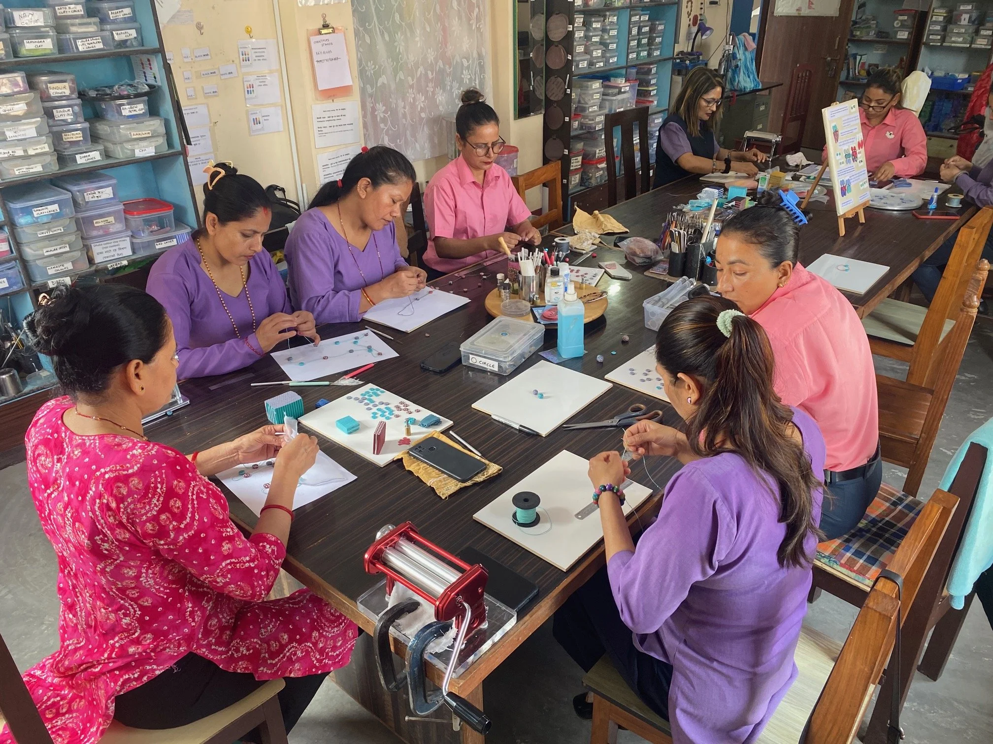 Wendy Moore’s influence lies very close to Kopila’s – and I’m not biased! When Kopila asked her to teach the organisation about polymer jewellery in 2006 Wendy was reluctant – but she visited to see what might be possible. Twenty years later she is no longer just a teacher and mentor but a dear friend and sister to Kopila. In fact, she has many friends and sisters across the whole organisation. Wendy lives with Kopila when she visits, twice every year, and they talk many times every week when she is back in Australia.